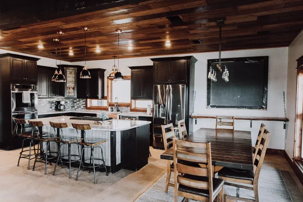 A fully furnished Scandinavian-inspired lodge featuring 4 bedrooms, 4 baths, lounge areas, and kitchen spaces, so your wedding weekend feels like a private retreat.