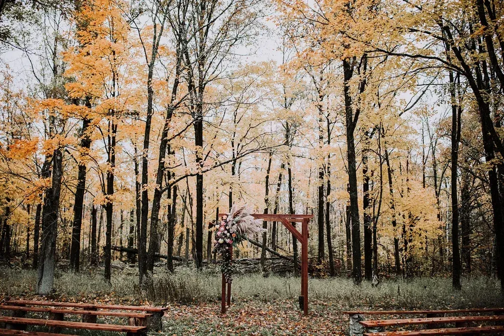 Outdoor forest and lake sites or rustic indoor options allow you to tailor your ceremony. The surroundings create a natural, romantic, and memorable setting for your vows.