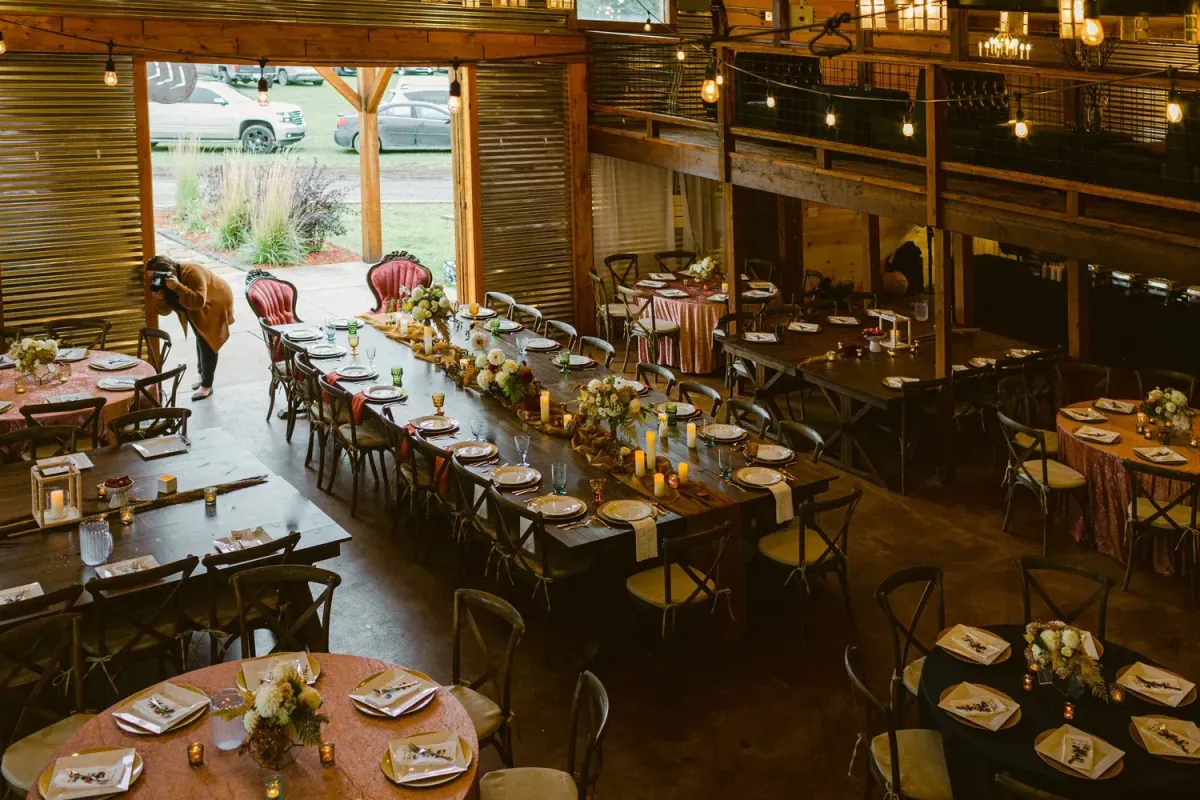 Reception areas with room for up to 100 guests, combining cozy, elegant interiors with open layouts for dinner, dancing, and laughter.