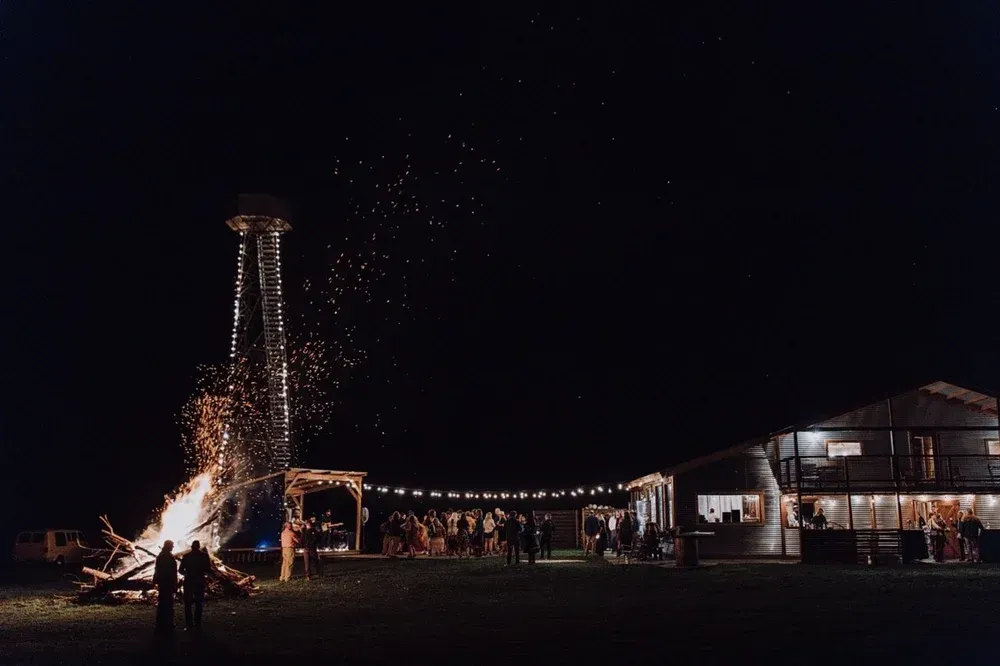 A 180-acre private property with trails, lakes, and forested areas, giving your wedding a tranquil, secluded vibe while remaining accessible for guests.